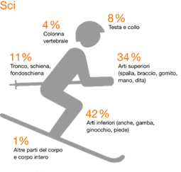 Nell’immagine che segue possiamo osservare a confronto quali sono le parti del corpo maggiormente lese negli sciatori e negli snowboarders: